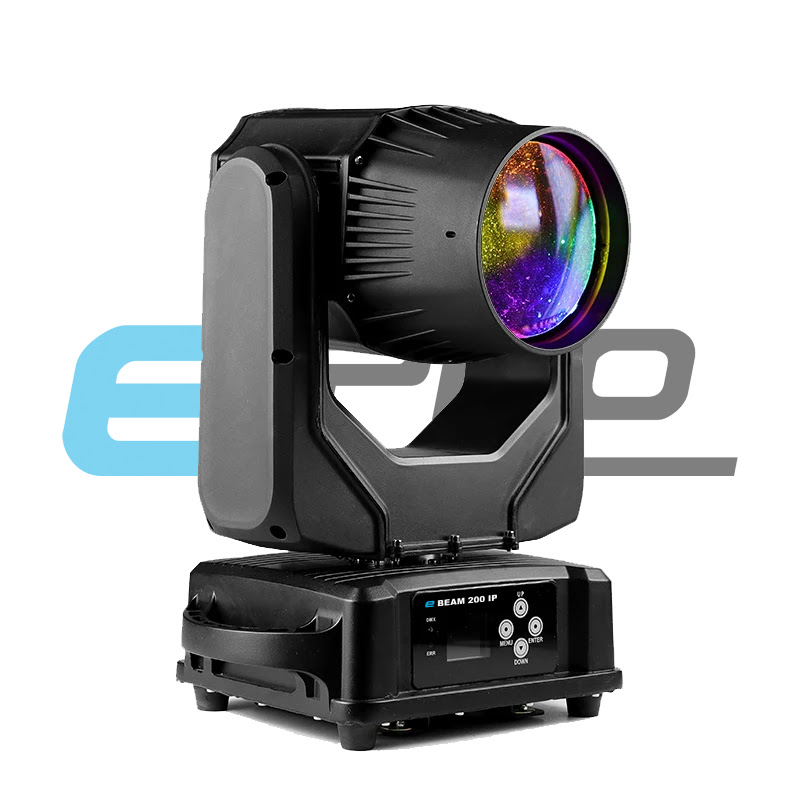 La E BEAM 200 IP es una cabeza móvil ideal para escenarios o eventos pequeños y medianos , espacios interiores o exteriores entre otros , sobre todo en condiciones climáticas adversas.