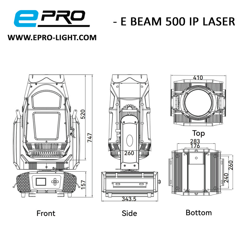 Nuestra E BEAM 500 IP LASER , es nuestro modelo mas potente en cabeza móvil de tipo BEAM LASER BLANCO para USO EN EXTERIOR IP65 , que incorpora la nueva tecnología de iluminación de alta potencia por laser blanco . Una tecnología mucho mas eficiente y potente que cualquier tecnología hasta la fecha. Mas potente que las lámparas de descarga y mucho mas aun de la tecnología led.
